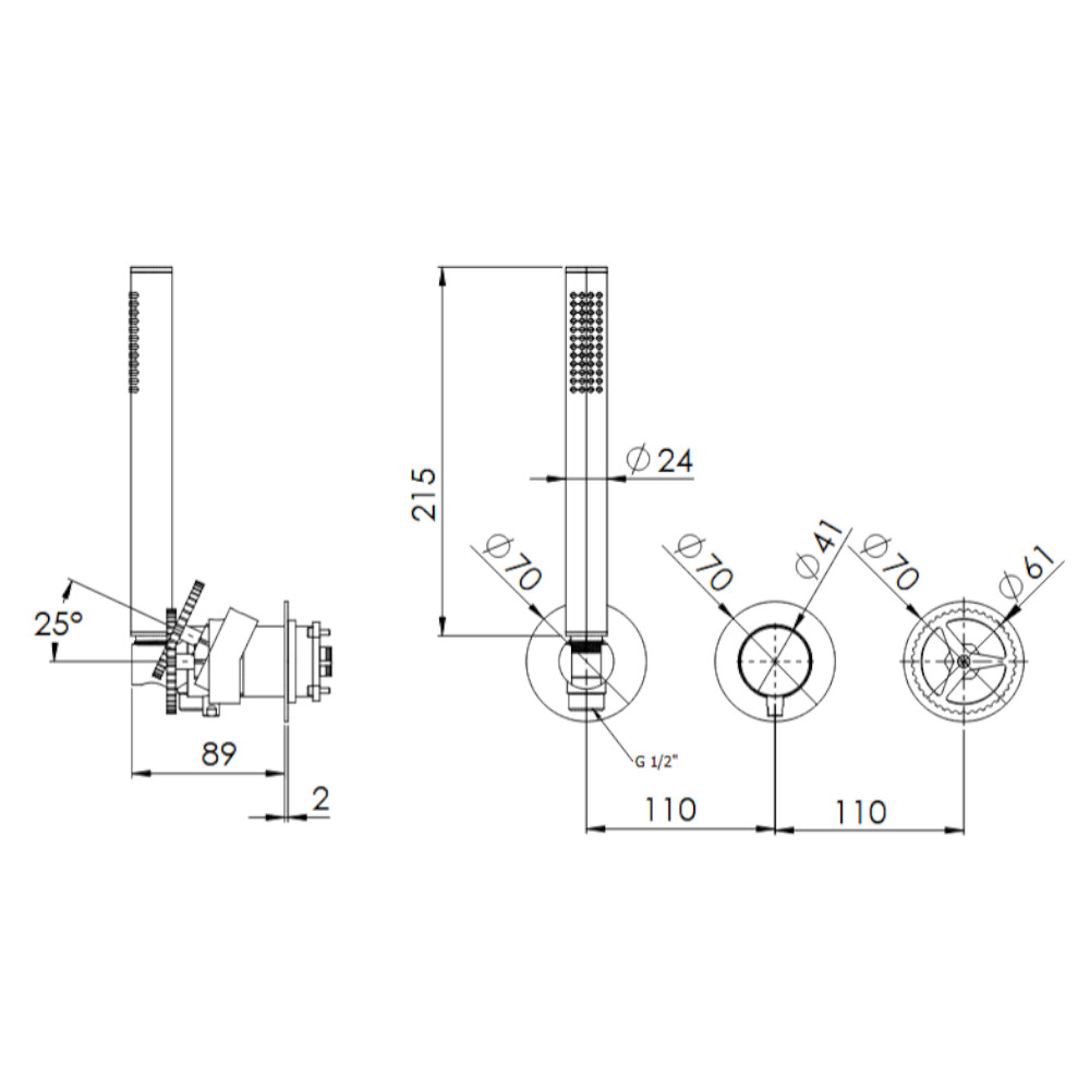 Remer Chrono Bateria natryskowa podtynkowa z zestawem natryskowym 2-drożna - element zewnętrzny Brushed Gold CH97D2PWBBG