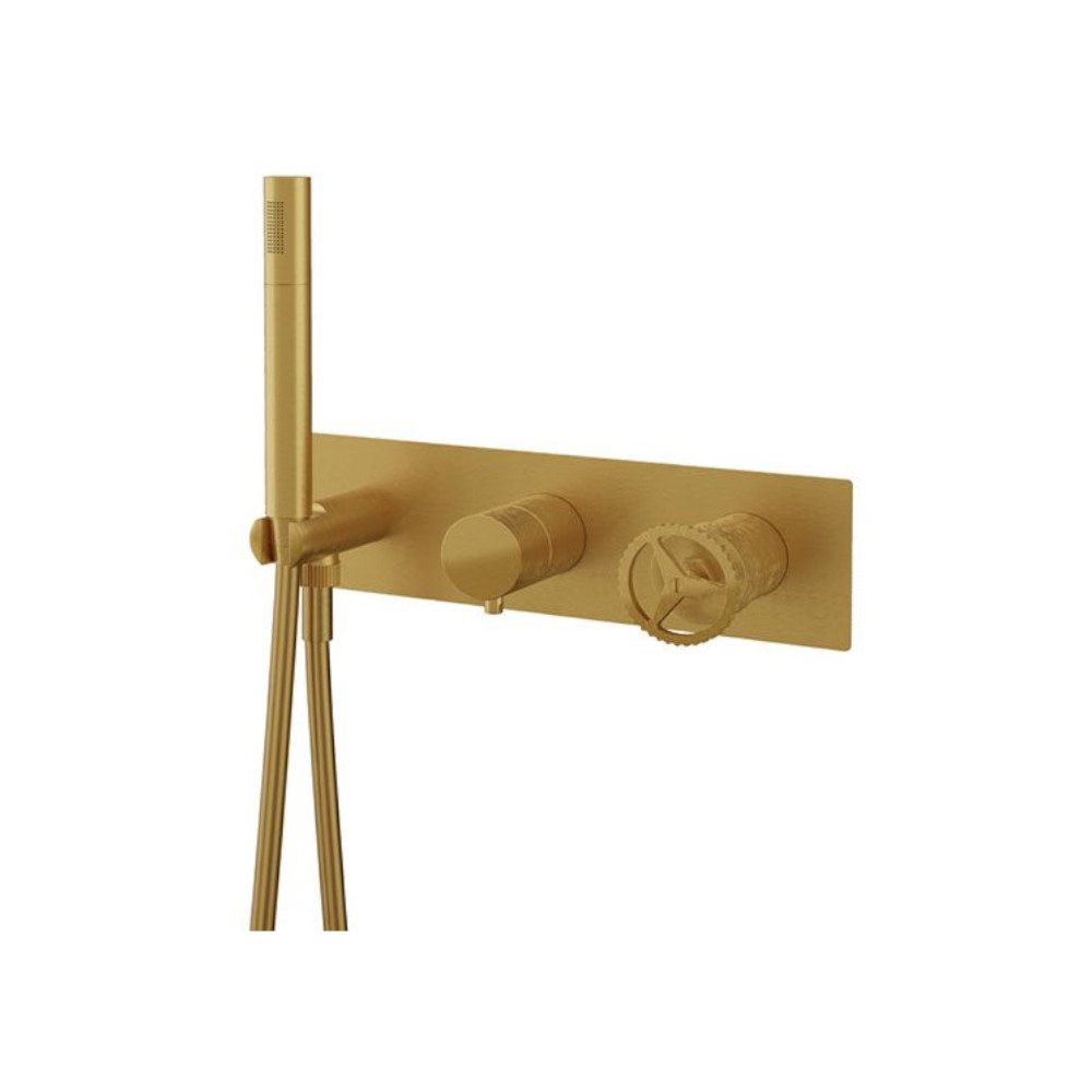 Remer Chrono Bateria natryskowa podtynkowa z zestawem natryskowym 3-drożna - element zewnętrzny Brushed Gold CH97D3WBBG