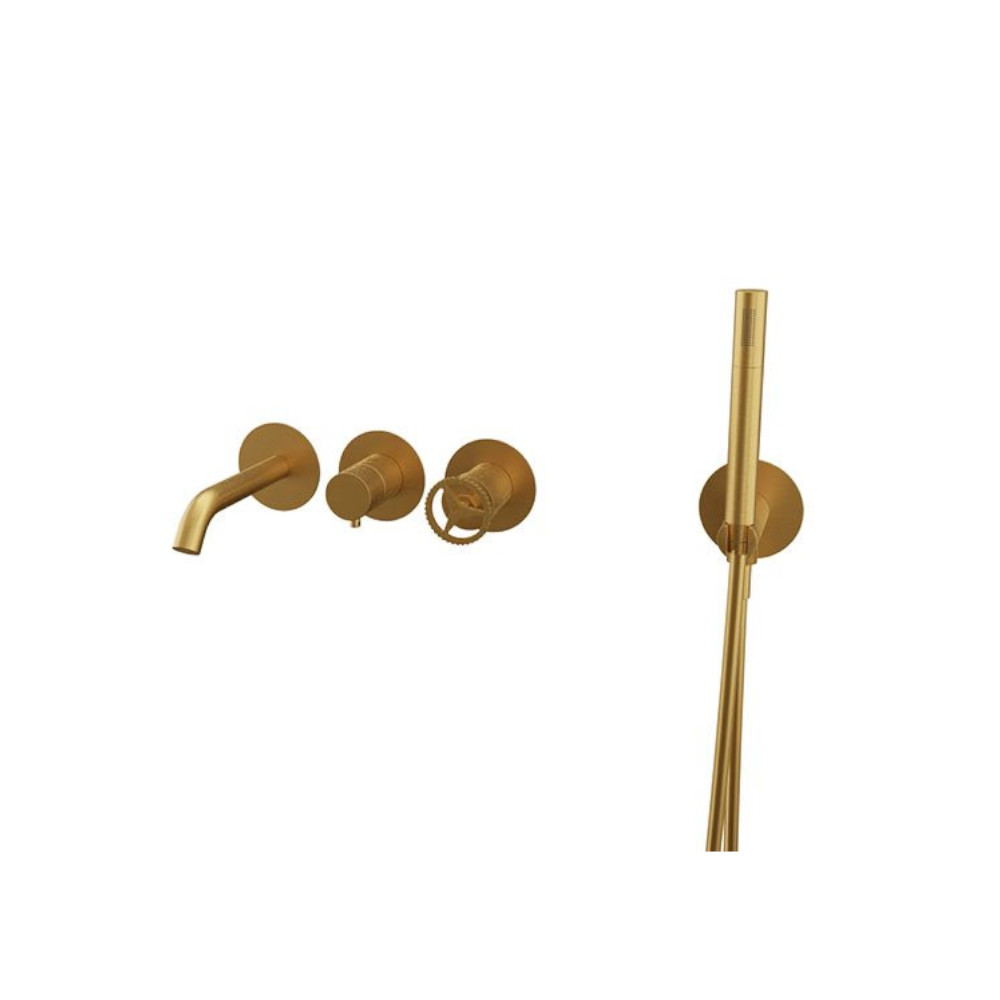 Remer Chrono Bateria wannowo-natryskowa podtynkowa z zestawem natryskowym 2-drożna - element zewnętrzny Brushed Gold CH53D2PWBBG
