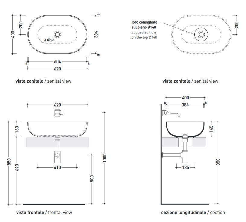 Flaminia App Umywalka stawiana na blat 62x40 cm carbone AP62ACAR WYPRZEDAŻ MAGAZYNOWA!!