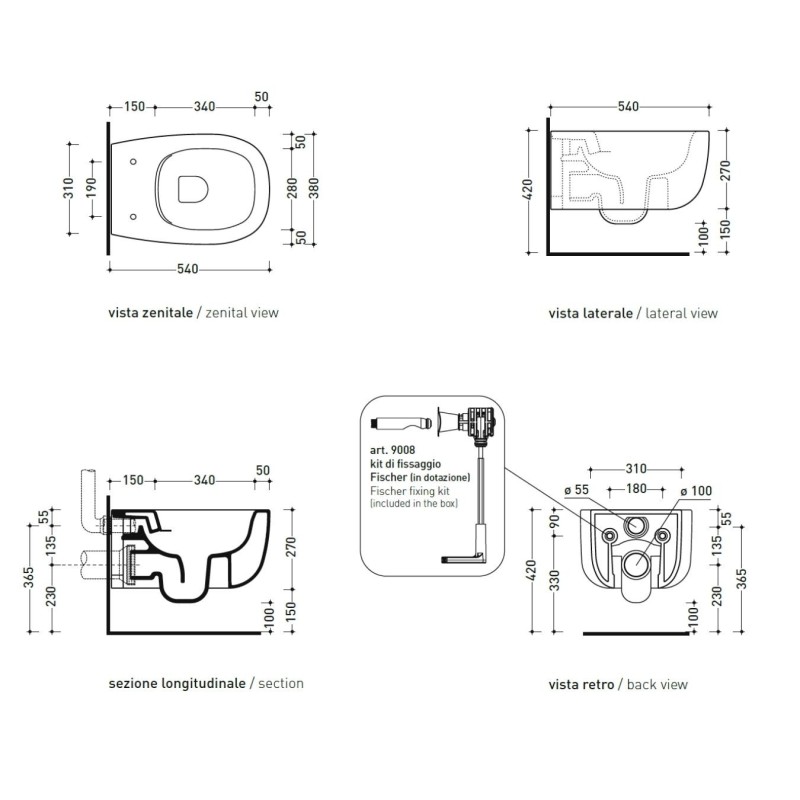 Flaminia Bonola Miska bezrantowa bez deski sedesowej 54x38 biały mat BN118GLAT