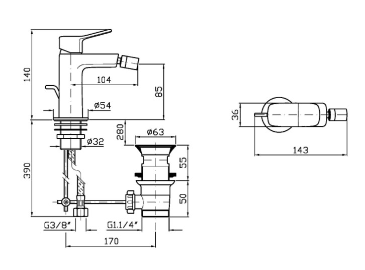 Zucchetti Brim Bateria bidetowa jednouchwytowa z korkiem 1¼”, wężyki podłączeniowe, perlator chrom ZBR384