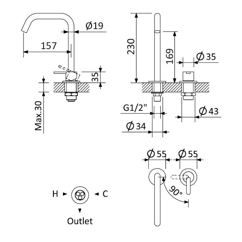 Bruma X-Alpha Bateria umywalkowa 2-otworowa montowana na blacie Satin stainless steel 1860006IS