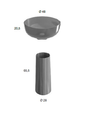 Wymiary umywalki: Ø 48 cm, wysokość 20 cm.