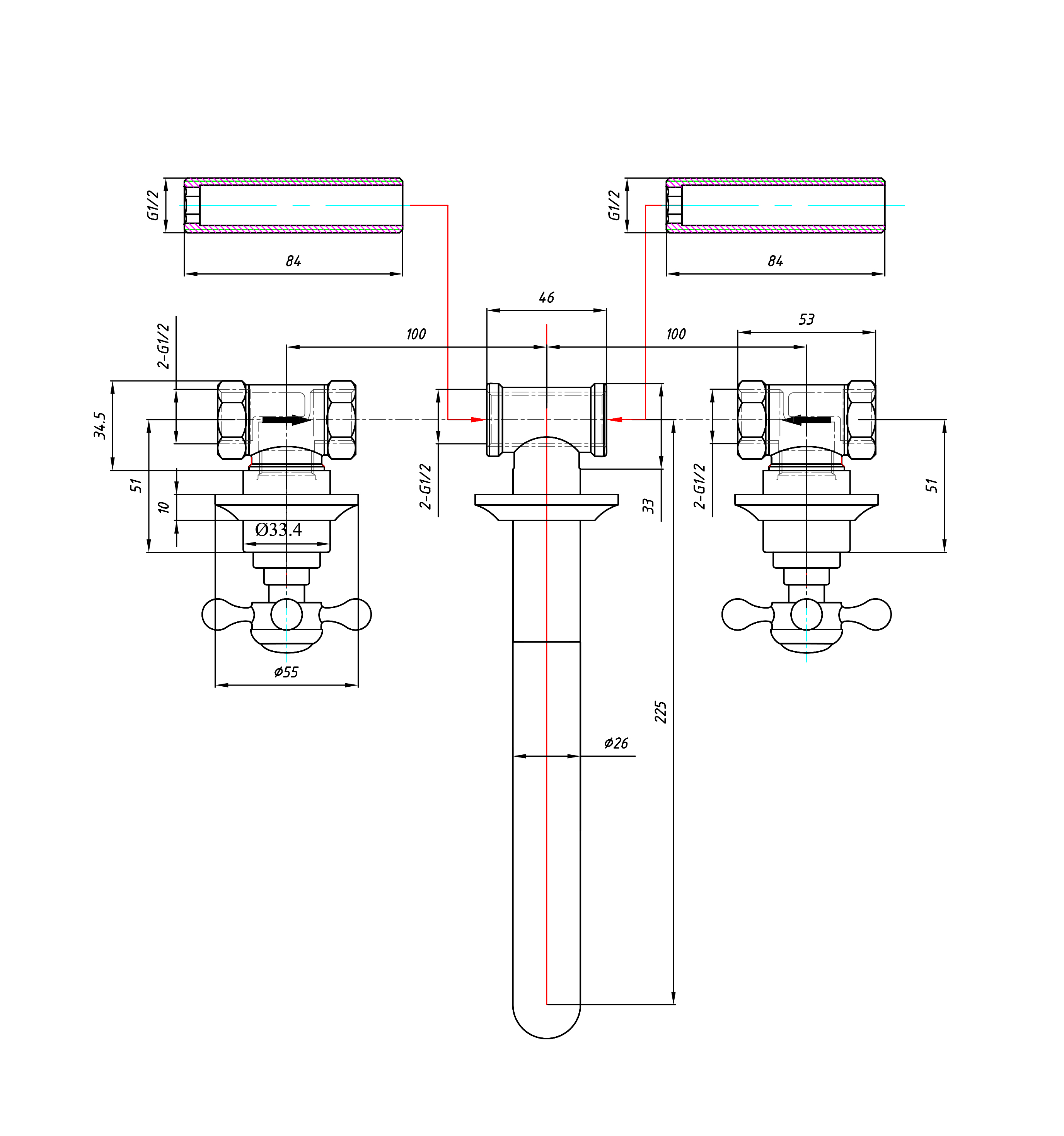 Galatea Design Retro Bateria umywalkowa podtynkowa 3-otworowa chrom GDCH28CHR