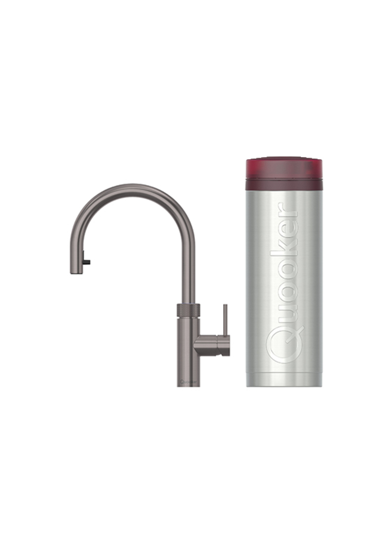Zestaw bateria kuchenna z wyciąganą wylewką Flex Round plus zbiornik HOT 3L PRO3 Gunmetal System Quooker składa się z eleganckiej baterii montowanej na blacie kuchennym oraz zbiornika instalowanego w szafce pod spodem. Zbiornik PRO3 dostarcza wrzącą wodę o temperaturze 100 stopni bezpośrednio z kranu Quooker. Zwykła ciepła i zimna woda doprowadzana jest ze standardowego domowego źródła wody. Quooker Flex posiada wyciąganą wylewkę, która zapewnia większy zasięg podczas płukania, czyszczenia i napełniania garnków. Wyciągana wylewka nigdy nie podaje wrzątku, co gwarantuje pełne bezpieczeństwo.