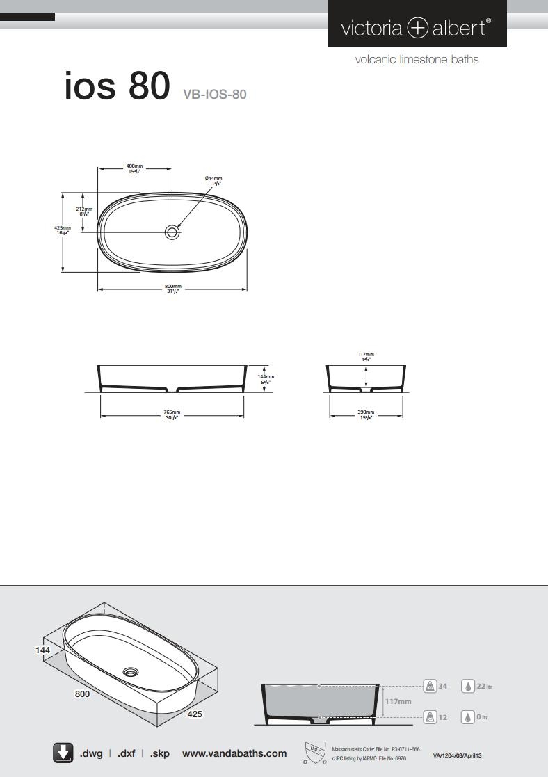 Victoria+Albert Ios Umywalka Stawiana na Blat 80x42,5cm Biała VB-IOS-80