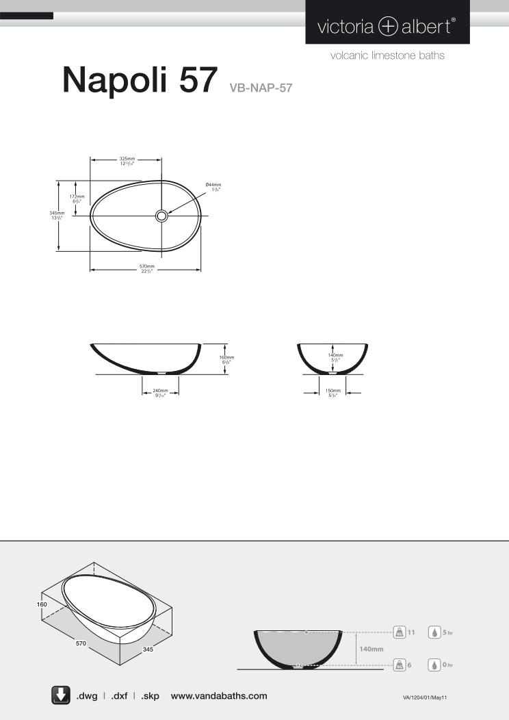 Victoria+Albert Napoli Umywalka Stawiana na Blat 57x34,5cm Biała VB-NAP-57