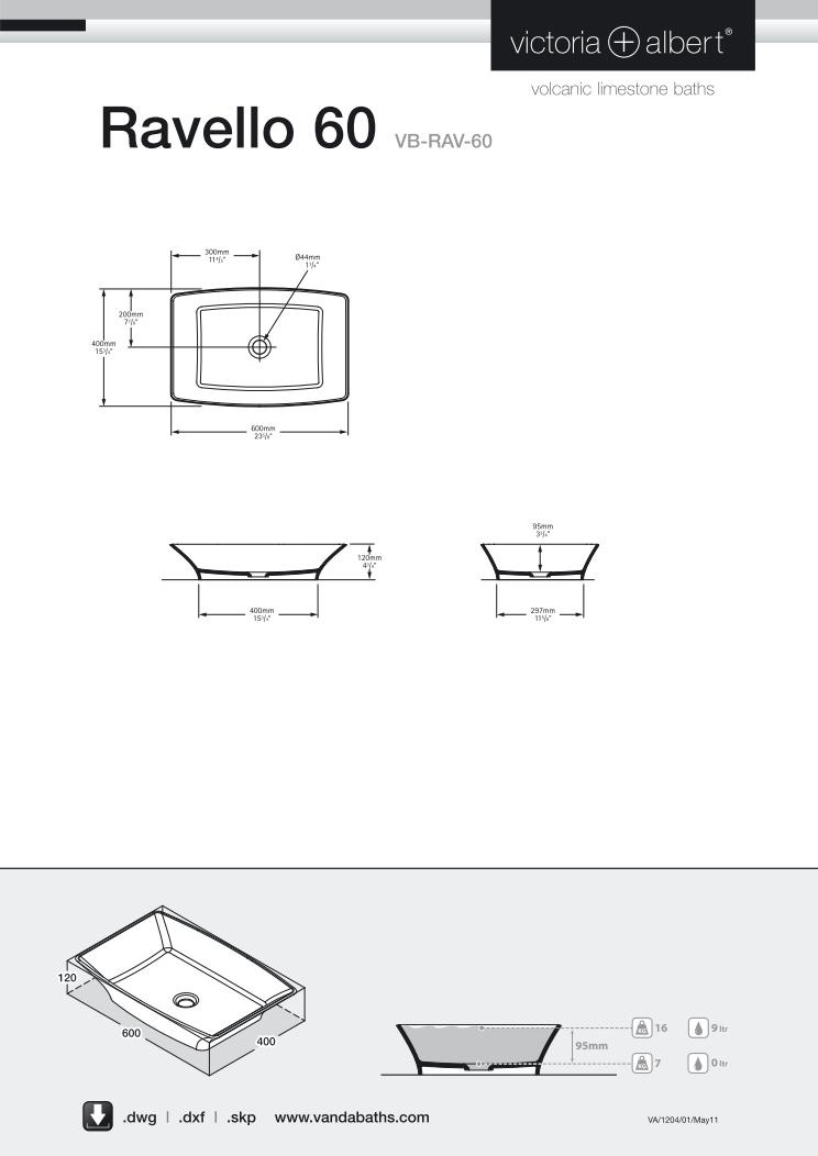 Victoria+Albert Ravello Umywalka Stawiana na Blat 60x40cm Biała VB-RAV-60
