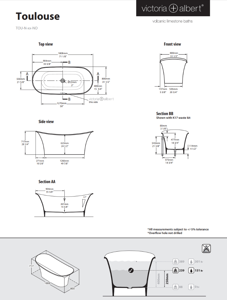Specjalny zestaw odpływowy do wanny Toulouse.