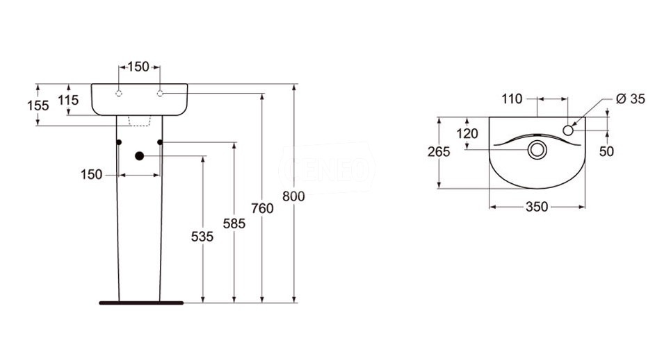 Ideal Standard Connect Arc Umywalka ścienna 35x26 cm biała E791501