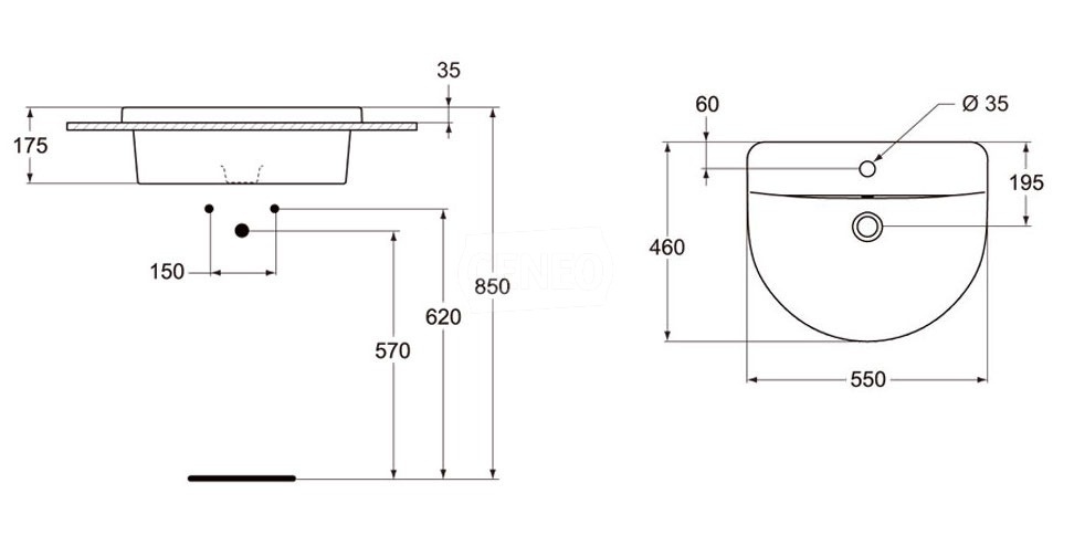 Ideal Standard Connect Arc Umywalka wpuszczana w blat 55x46 cm biała E797801