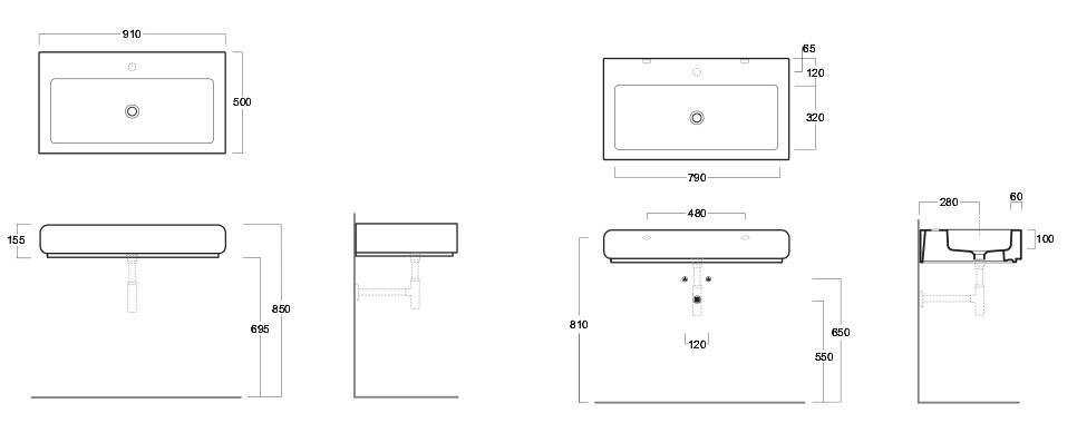 Simas Oh! Umywalka ścienna/stawiana na blat 90x50cm OH12/OH 12