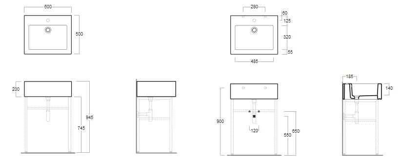 Simas Frozen Umywalka Ścienna z możliwością zainstalowania nóżek