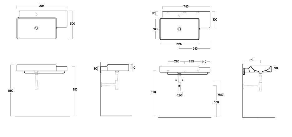Simas Flow Umywalka Ścienna z blatem po prawej stronie 88x50cm FL02/FL 02