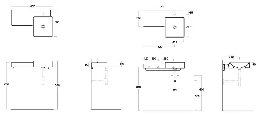 Simas Flow Umywalka Ścienna z blatem po lewej stronie 82x50cm FL20/FL 20