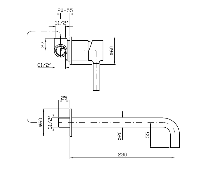 2-otworowa, jednouchwytowa bateria umywalkowa podtynkowa z perlatorem.