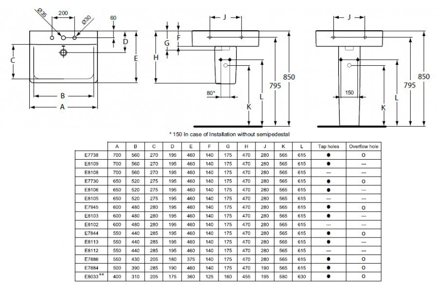 Możliwość skompletowania z postumentem E7973, półpostumentem dużym E7974 lub odpowiednimi meblami.