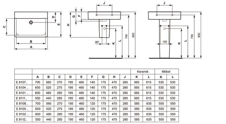 Ideal Standard Connect Cube Umywalka ścienna 55x46 cm biała E811201