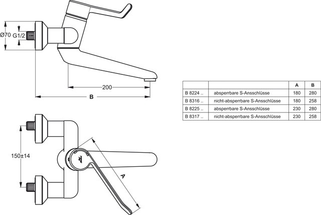 uchwyt 180mm, wylewka 200mm, przyłącza z zaworkami odcinającymi B8224AA