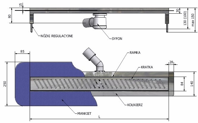 Rynienka prysznicowa przeznaczona jest do stosowania w nowoczesnych rozwiązaniach architektonicznych kabin prysznicowych pozbawionych standardowego brodzika co pozwala na swobodny dobór kształtu kabiny oraz wykończenia powierzchni podłogi.