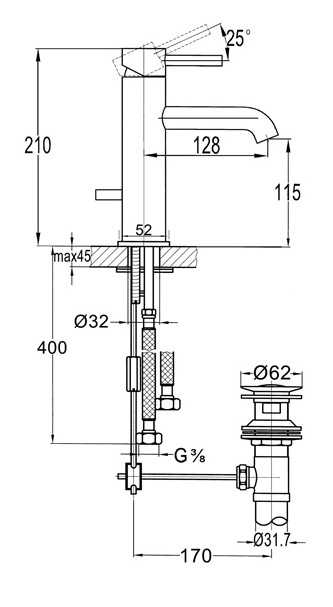 STEINBERG SERIA 100 bateria umywalkowa z automatycznym korkiem 100 1755