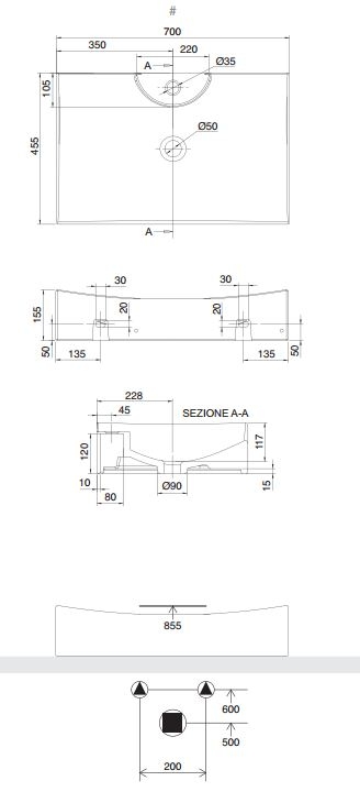 Scarabeo Tsunami Umywalka ścienna/stawiana na blat 70x45,5 cm biała 8039R