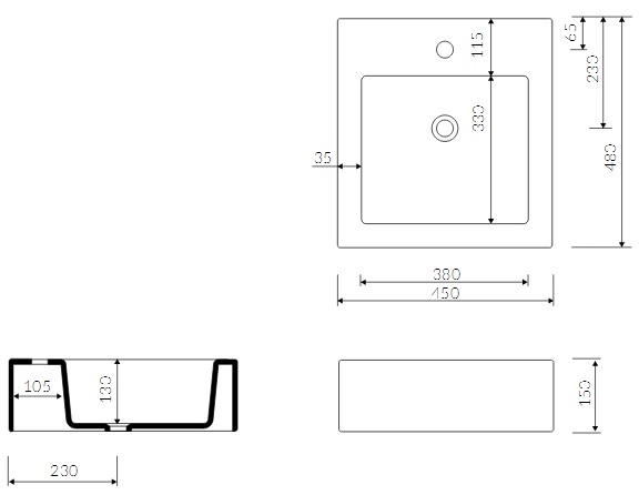 Umywalka CETI - umywalka z otworem lub bez otworu na baterię, bez przelewu. Umywalka wykonana jest z lanego marmuru, odporna na przebarwienia, wytrzymała na niskie i wysokie temperatury, promienie UV oraz zarysowania.