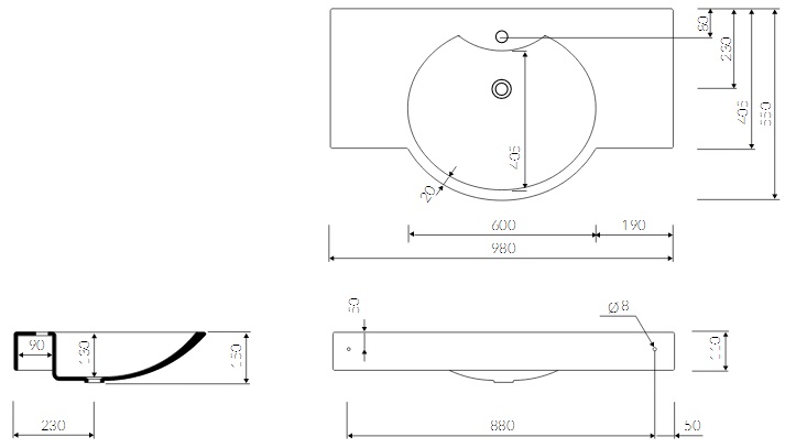 Umywalka CARME 98- umywalka z otworem na baterię, z przelewem. Umywalka wykonana jest z lanego marmuru, odporna na przebarwienia, wytrzymała na niskie i wysokie temperatury, promienie UV oraz zarysowania.