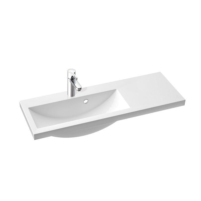 Umywalka TALIA 90 L - umywalka z otworem lub bez otworu na baterię, z przelewem. Występuje również w wersji prawej. Umywalka wykonana jest z lanego marmuru, odporna na przebarwienia, wytrzymała na niskie i wysokie temperatury, promienie UV oraz zarysowania.