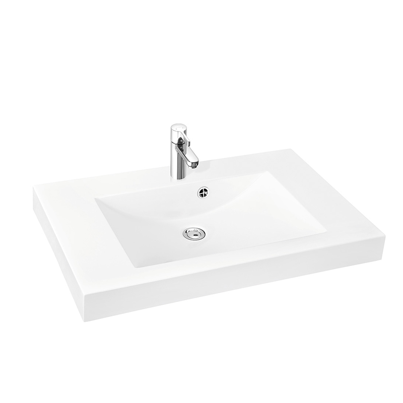 Umywalka MOIRA Bis 90 - umywalka z otworem lub bez otworu na baterię, z przelewem. Umywalka wykonana jest z lanego marmuru, odporna na przebarwienia, wytrzymała na niskie i wysokie temperatury, promienie UV oraz zarysowania.