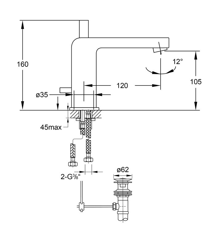 STEINBERG SERIES 120 Bateria umywalkowa, element zewnętrzny chrom 1201020