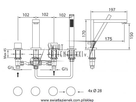 STEINBERG SERIA 160 4-otworowa bateria wannowa / prysznicowa chrom 160 2400