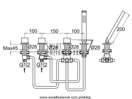 STEINBERG SERIA 160 4-otworowa bateria wannowa / prysznicowa chrom 160 2480