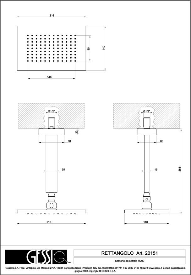 Gessi Rettangolo Deszczownica 216x140 mm chrom 20151.031 / 20151031