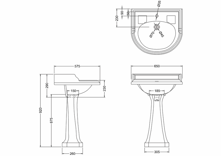 Burlington Classic Round Umywalka 65x 57,5 cm jednootworowa biała B17 1TH