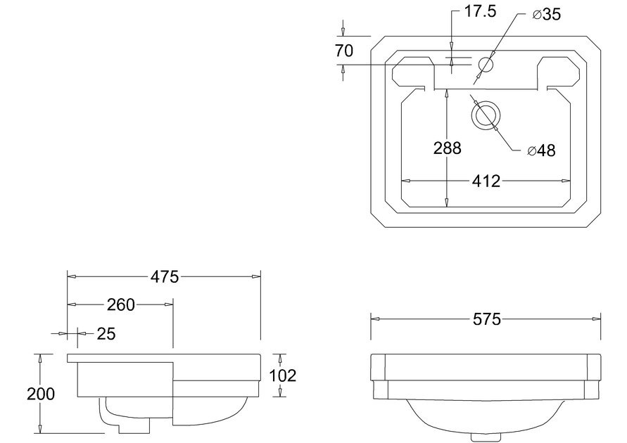 Burlington Umywalka półwpuszczana w blat 58x47 cm jednootworowa biała B121TH