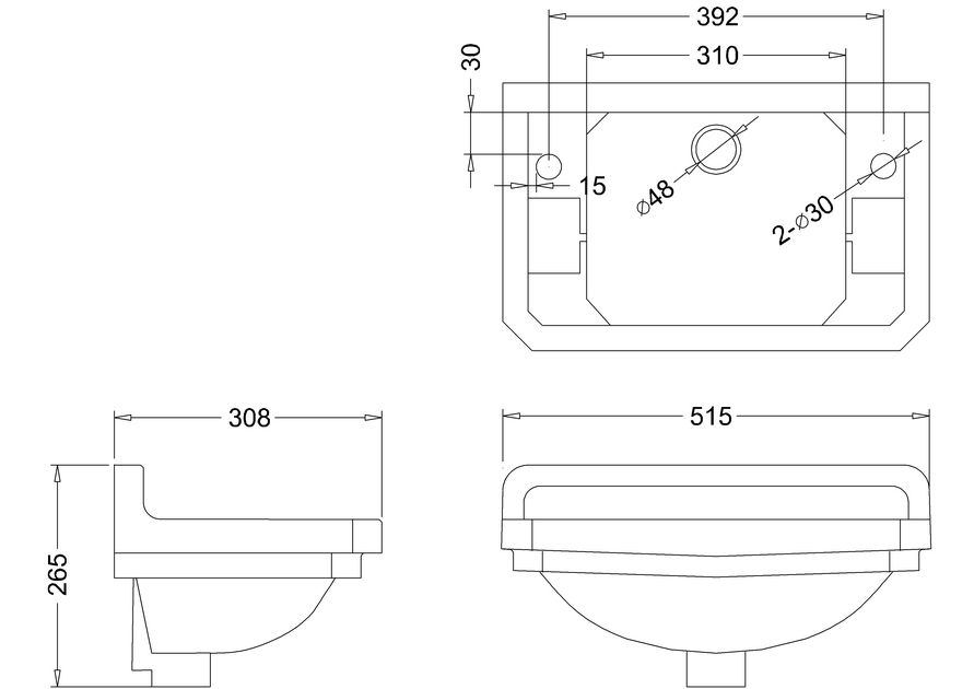 Burlington Edwardian Cloakroom Umywalka Ścienna 51x30 cm dwuotworowa biała B8 W MAGAZYNIE!!