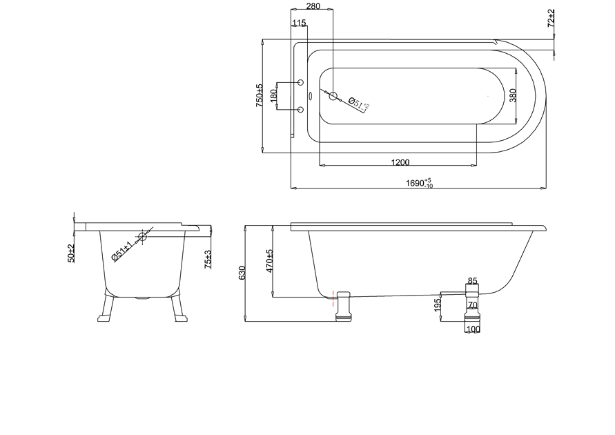 Zdjęcie poglądowe, przedstawia wannę z przykładowymi nóżkami