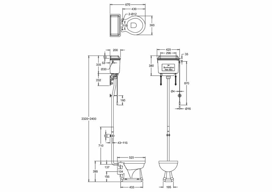 Burlington Spłuczka górnopłuk 43 cm Czarne Aluminium T60BLA
