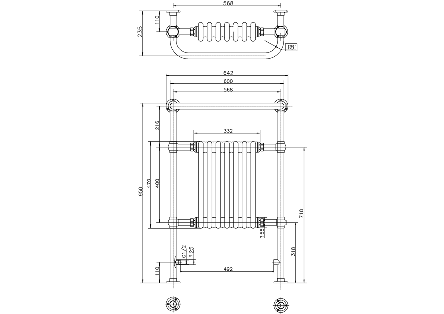 Burlington Trafalgar Grzejnik wodny z zaworami bez grzałki chrom/biały R1CHR+R6CHR