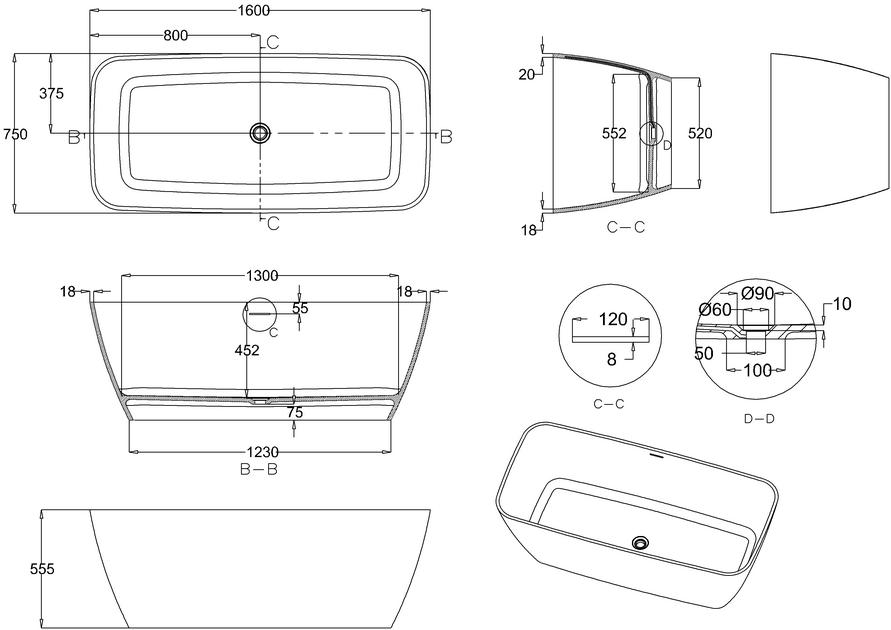 Clearwater Vicenza Piccolo Wanna wolnostojąca 160x75 cm Biała N6D