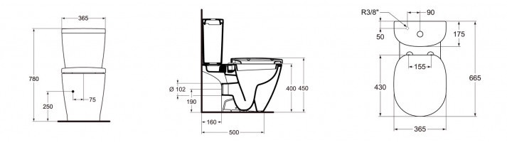 wolnoopadającą E712701 lub zwykłą E712801 deską sedesową z duroplastu z metalowymi zawiasami.