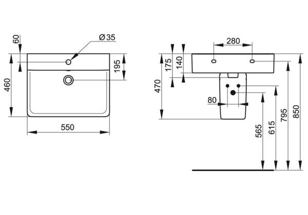 Ideal Standard Connect Cube Umywalka ścienna 55x46 cm biała E713901