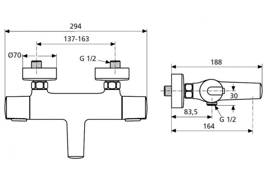 • Manualny przełącznik wanna/natrysk zintegrowany z uchwytem regulującym moc przepływu wody