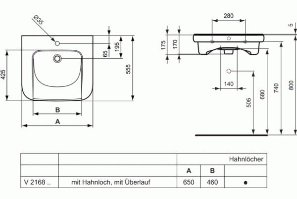 Ideal Standard Contour 21 Umywalka ścienna dla osób niepełnosprawnych 65 cm biała V216801