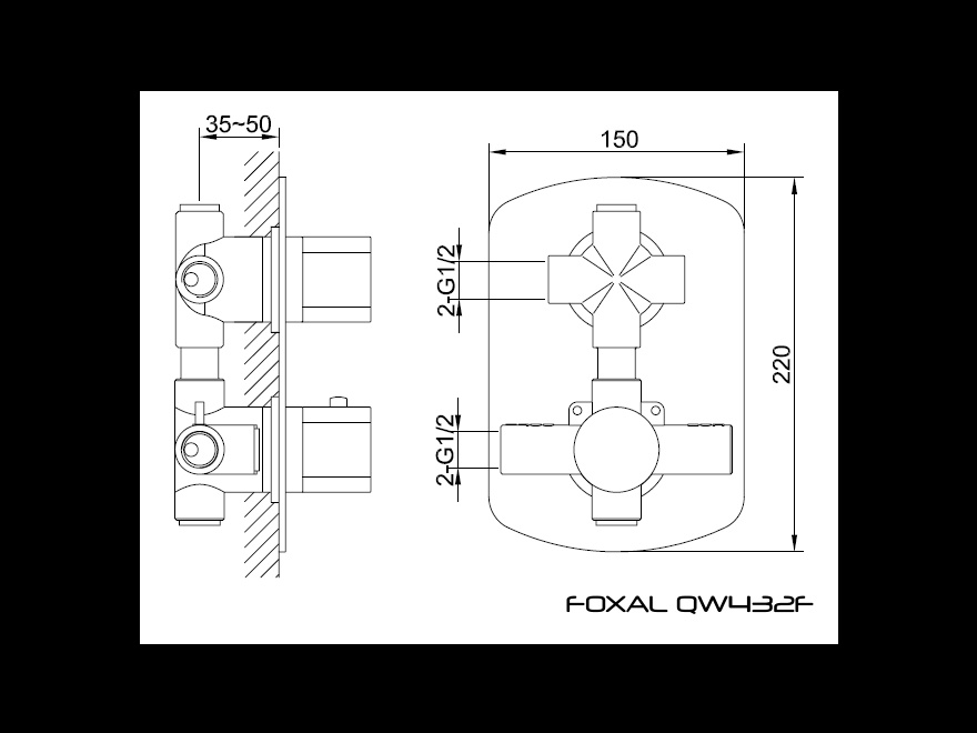 Szlachetna bateria prysznicowa termostatyczna z 2 wyjściami FOXAL QW432F