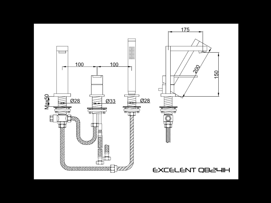 Szlachetna bateria wannowa 3-otworowa EXCELENT QB241H