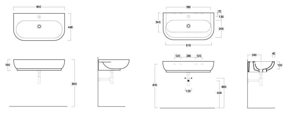 Simas E-Line Umywalka Ścienna/Stawiana na blat