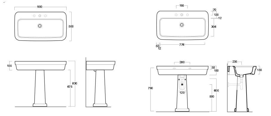 Simas Evolution Umywalka Ścienna/Stawiana na postumencie 90x50cm EVO12/EVO 12